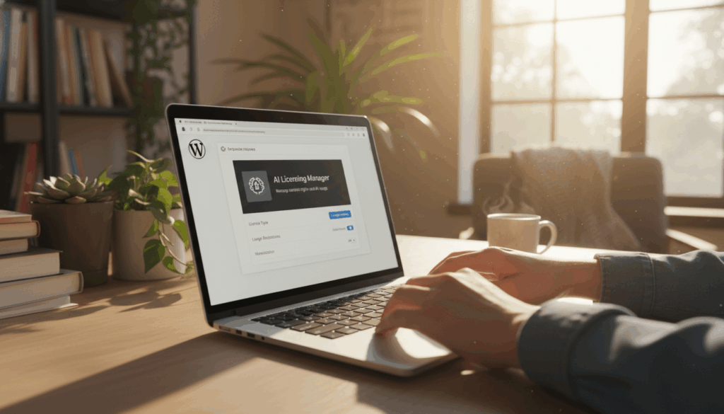 • AI-license.txt generation: Creates domain-level license file at yoursite.com/ai-license.txt